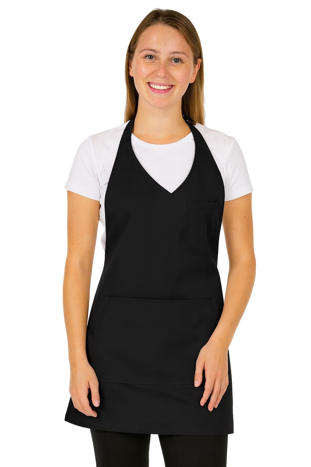 Fartuch posiada na dole dużą kieszeń , oraz praktyczną kieszeń na piersi na notes, długopis przydatne w pracy kelnera , baristy, sommeliera podczas składania zamówień.