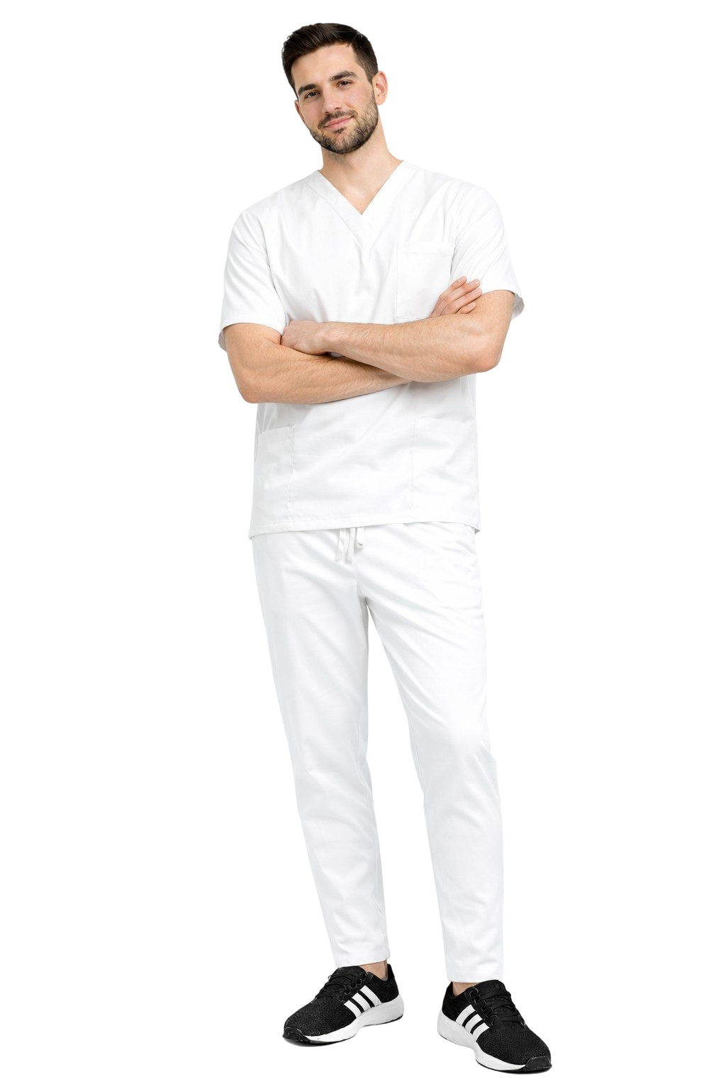 Strona główna ? ODZIEŻ MEDYCZNA ? ODZIEŻ MEDYCZNA MĘSKA ? KOMPLETY MEDYCZNE ? JEDNOKOLOROWE ? Komplet medyczny męski biały CLINIC SLIM roz. L