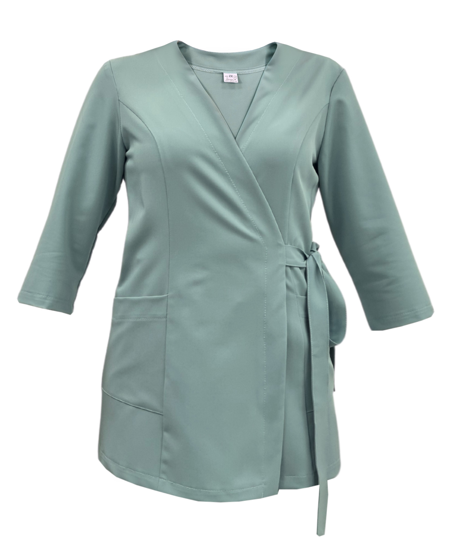 Nasz żakiet kopertowy, tunika  to idealny wybór dla profesjonalistek branży medycznej, kosmetycznej oraz  innych sektorów. Wykonany z wysokiej jakości elastycznej tkaniny 200g/m2,rozciągliwej w 4 kierunkach, z dodatkiem wiskozy, zapewnia komfort noszenia i swobodę ruchu. .Kopertowy krój podkreśla sylwetkę, a szeroki pasek wiązany w talii umożliwia precyzyjne dopasowanie do każdej  figury. Praktyczne głębokie 2 kieszenie na wysokości bioder,umożliwią przechowywanie niezbędnych akcesoriów . Tunika idealnie sprawdzi się w dni które wymagają dużej aktywności fizycznej. Elegancki design, różnorodność kolorystyczna oraz funkcjonalność, sprawią że wyróżnisz się w tłumie.